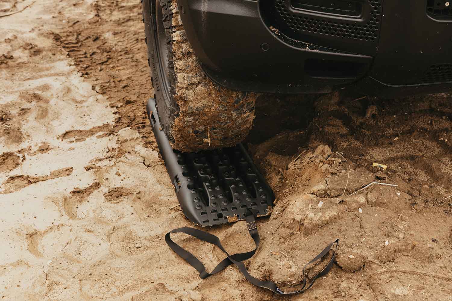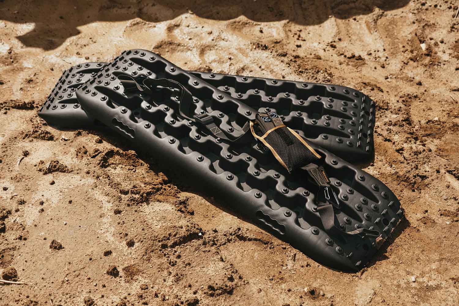 It takes a lot to get a 4x4 stuck in some sand or mud and if there is no going forwards or backwards, Recovery Tracks are usually one of the first and best solutions. To make operating these Recovery Tracks now even more intuitiv the versitile and robust shoulder straps can be used in various ways.