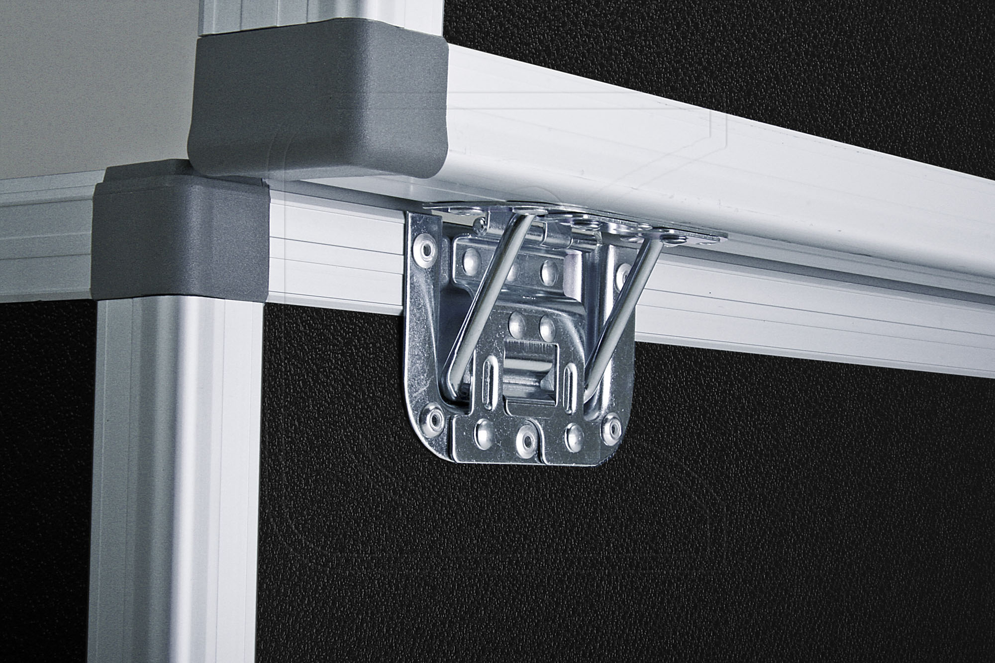 The hinges and latches come from the professional audio and studio sector and are designed for years of use under the toughest conditions. The butterfly latches keep the box securely closed without rattling, while sturdy uprights prevent the lid from folding shut - your fingers will thank you! An optional padlock can be fitted on request. Delivery includes mounting material. Existing screw holes on the vehicle are used for mounting, these must be drilled on the box. An adapter is supplied for wheel housings from model year 2007.