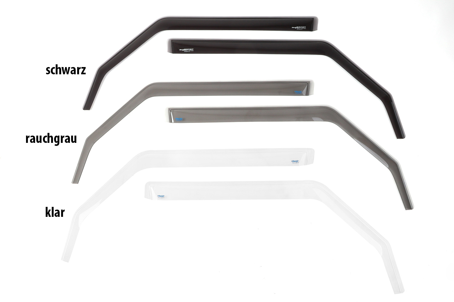 The wind deflectors are available in transparent, smoke gray and black and are supplied with a general operating permit (ABE). Installation is a matter of minutes with the enclosed instructions.